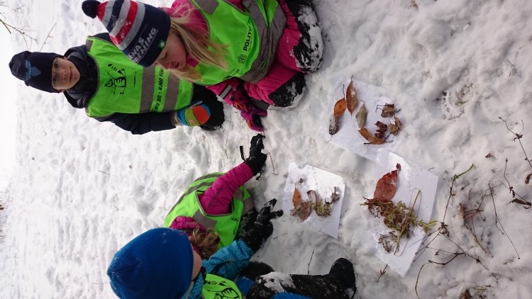 Foto: Elevene lager tall av naturmateriale.