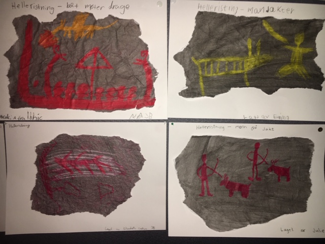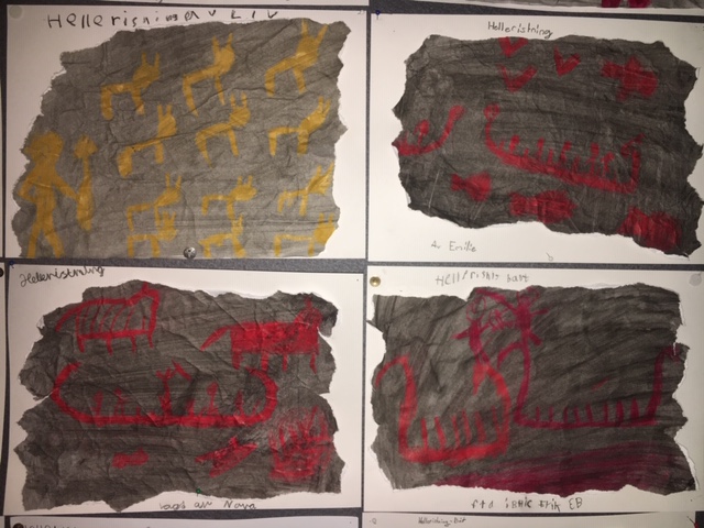 3. trinn har om bronsealderen i samfunnsfag. Vi har lært om helleristninger og har i den forbindelse laget våre egne helleristninger i K&H. Vi synes at resultatet ble ganske bra 😉
